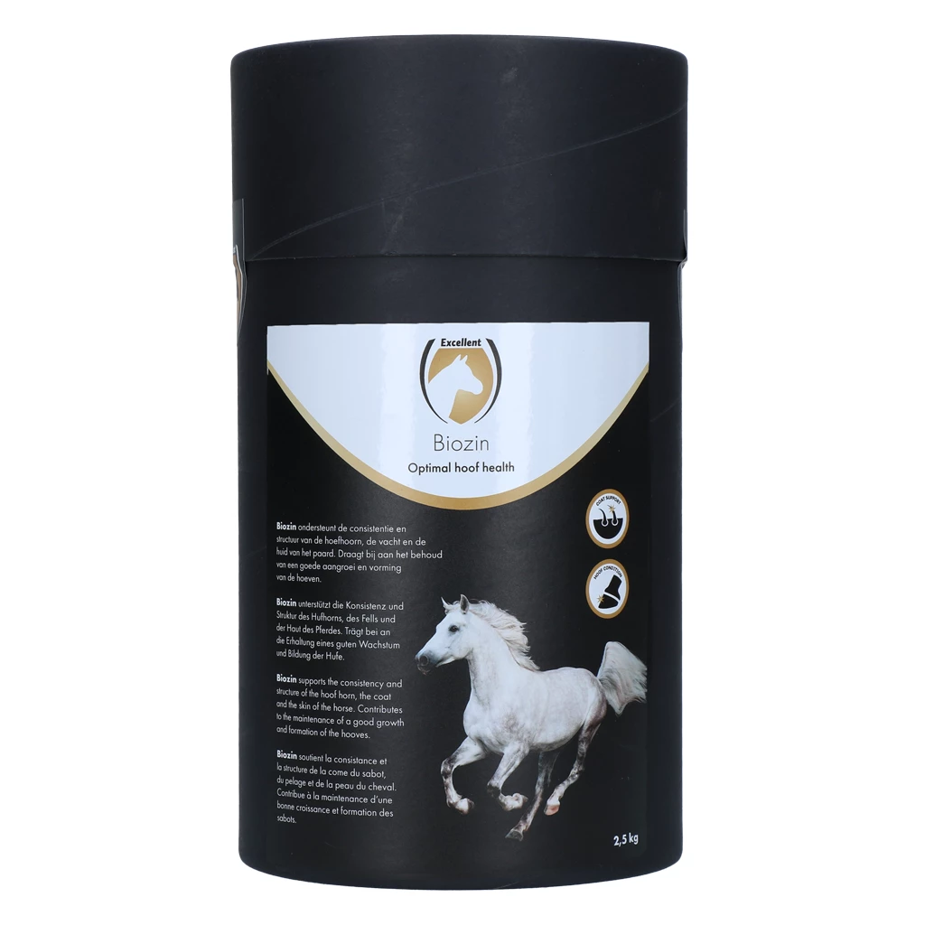 • Biozin ondersteunt de structuur van de hoefhoorn en zorgt voor een goede aangroei en vorming van de hoeven.