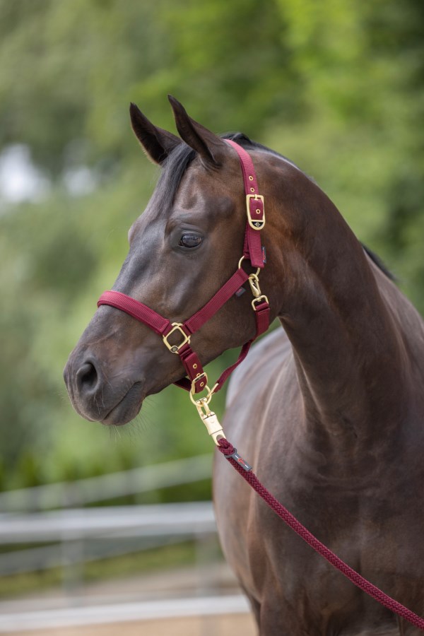 Klassiek elegant halster met verstelbare neus- en halsriem via gespen en een zachte voering. Gemaakt van slijtvast materiaal met sterke naden. Het halster is eenvoudig te openen en te sluiten met een karabijnhaak. Voorzien van stevige, stijlvolle fournituren, en metalen oogjes die voorkomen dat de doornsluitingen losraken.
