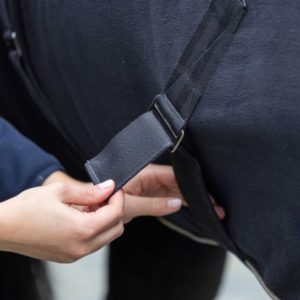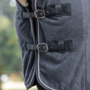 Dankzij de borstsluiting, staartriem en verstelbare kruissingels zit de deken stabiel, zelfs bij actief gebruik. Het ademende materiaal zorgt voor optimale ventilatie en comfort. Na gebruik is de deken eenvoudig schoon te maken in de wasmachine op 30 °C.